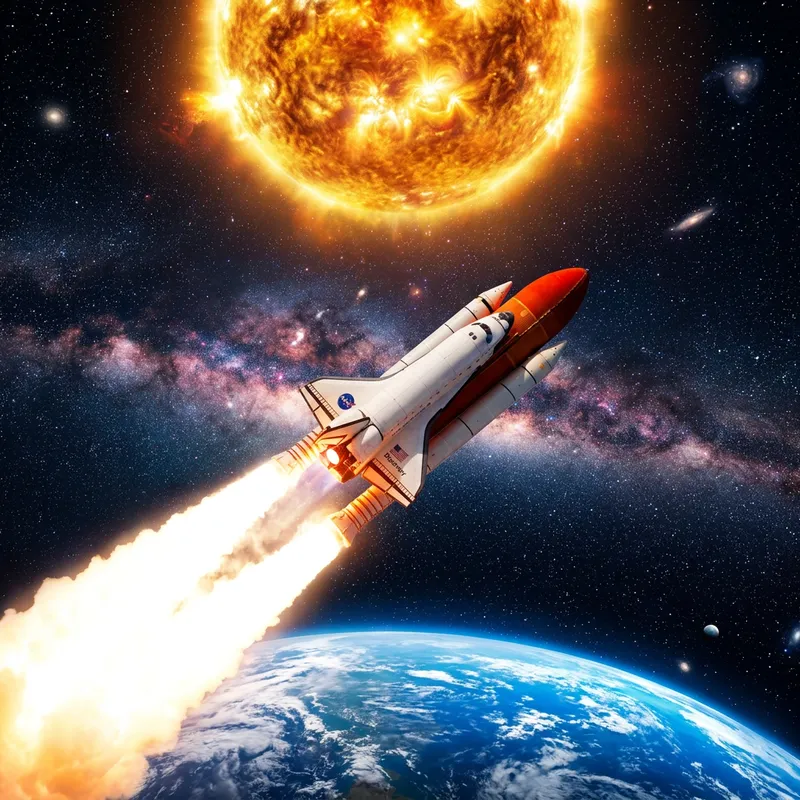 Awe-Inspiring Scene: Space Shuttle Journey to the Sun
