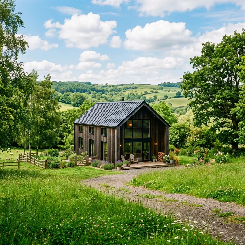 Barnhouse Style Panel-Frame House in Serene Landscape
