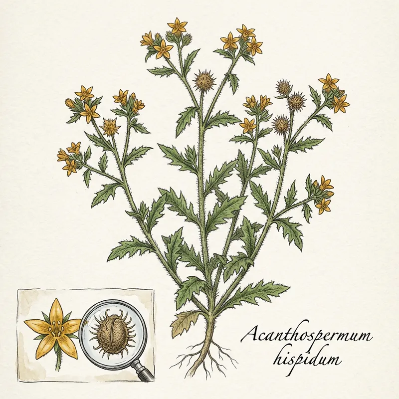 Magnificent Acanthospermum hispidium Botanical Illustration