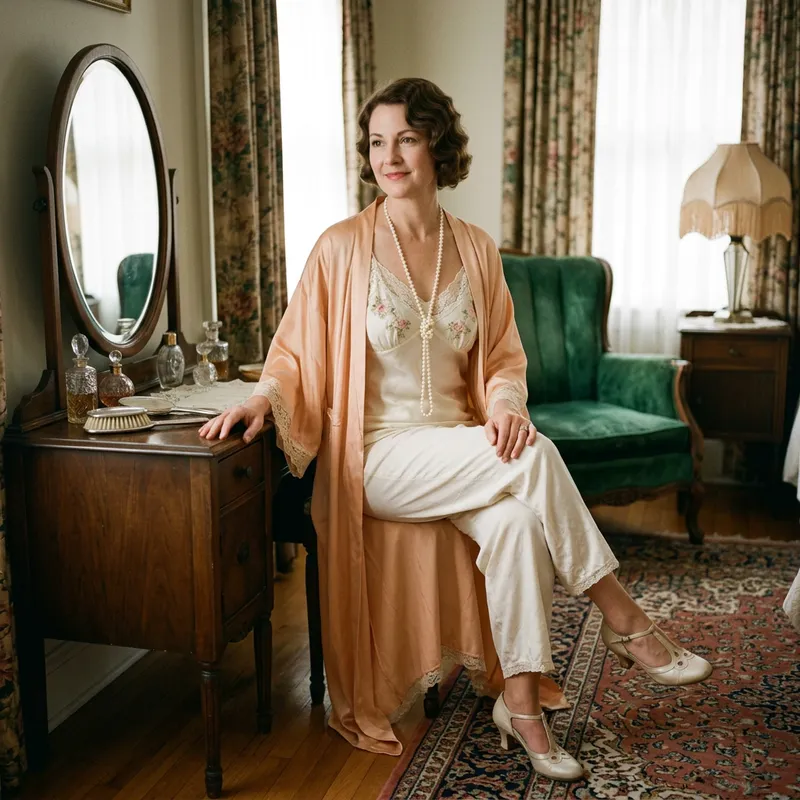 beautiful curvy milf, 45 years old, in old fashion lingerie, retro style by 20s