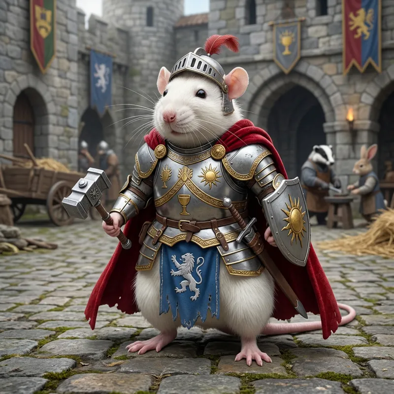 Big white fat rat paladin knight medieval