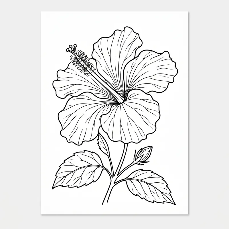 Black and white outline of hibiscus flower.