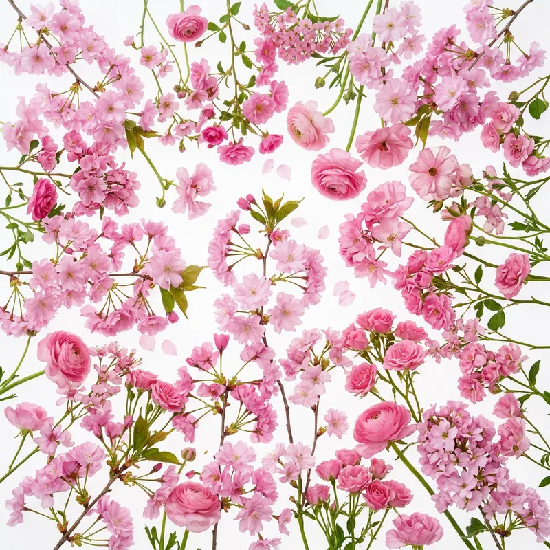 Original Prompt: Fondo blanco con muchas flores rosas creciendo