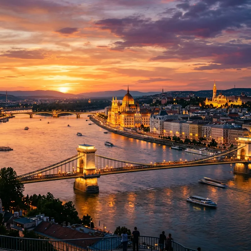 Budapest Sunset Panorama: Chain Bridge & Parliamentary Architecture