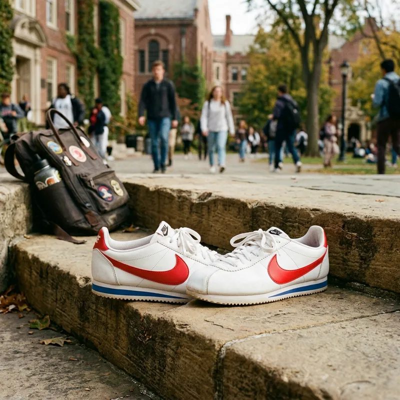 A pair of campus-style sneakers featuring a well-known swoosh logo