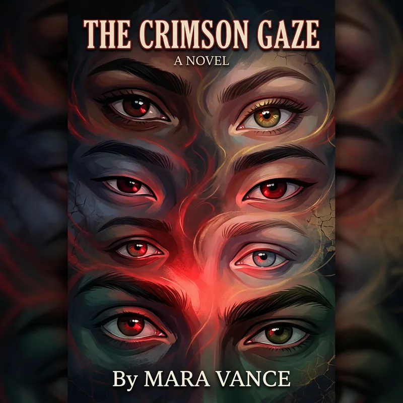 Captivating Book Cover Illustration: Diverse Eyes Entranced by Red Light