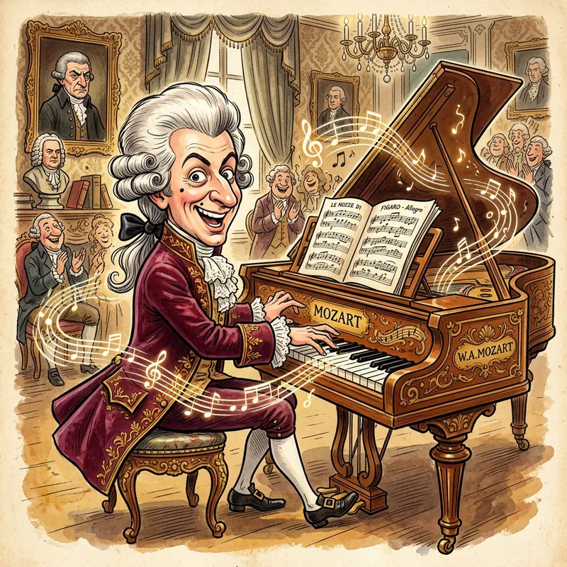 Whimsical Caricature of Mozart at His Piano