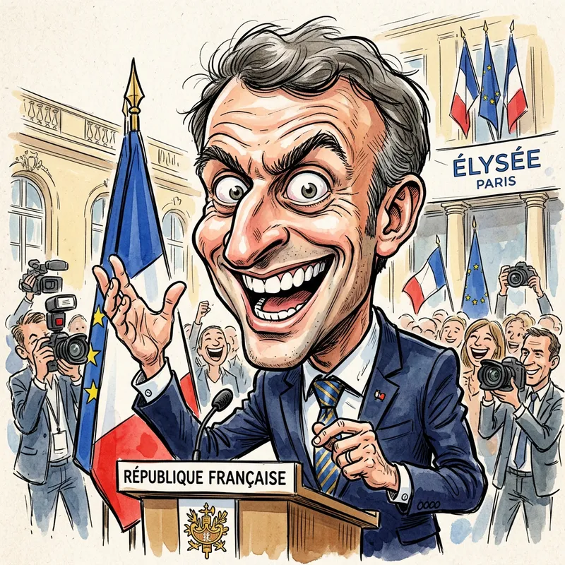 Humorous Caricature of Emanuel Macron