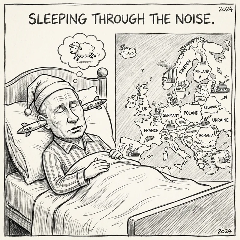 Satirical Caricature of Putin Amid Europe's Arms Race