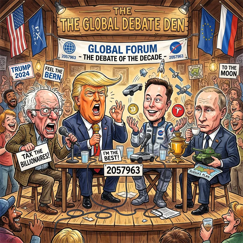 Famous Political Caricatures: Sanders, Trump, Musk & Putin