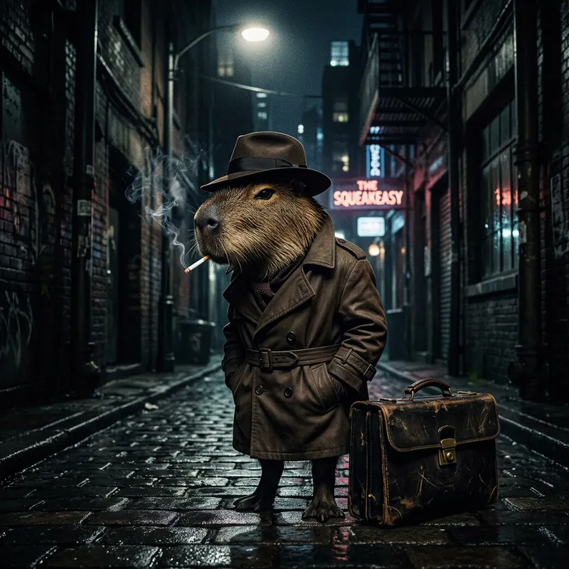The Enigmatic Capybara Detective in Noir Style