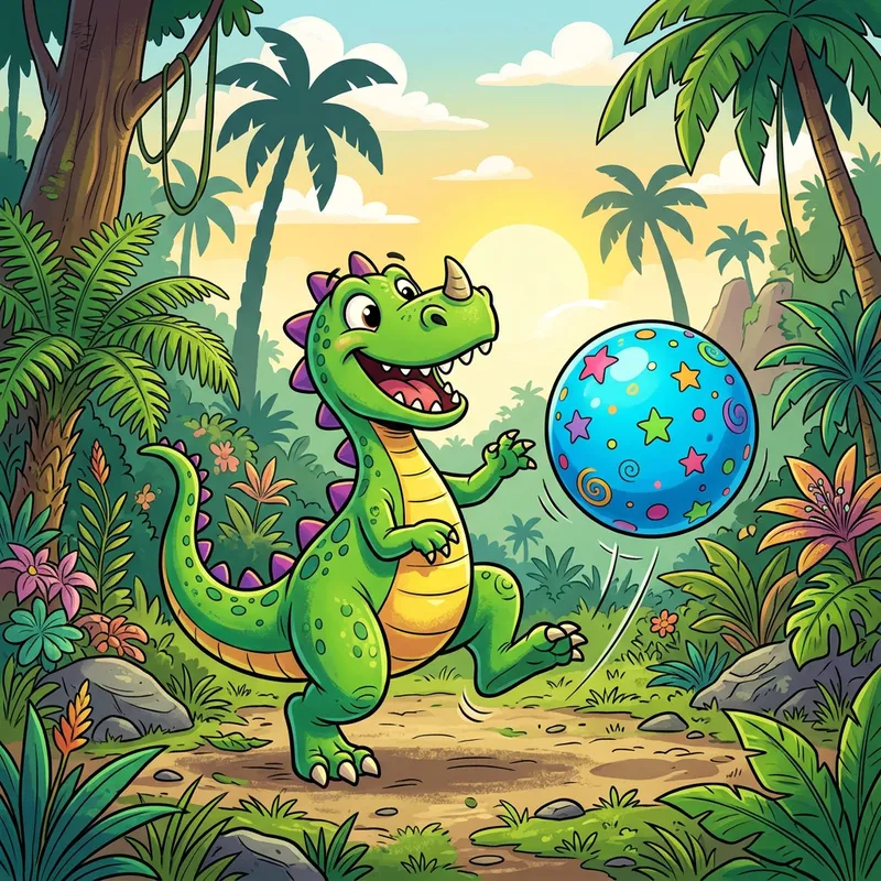 Colorful Cartoon Dinosaur Playing with a Ball