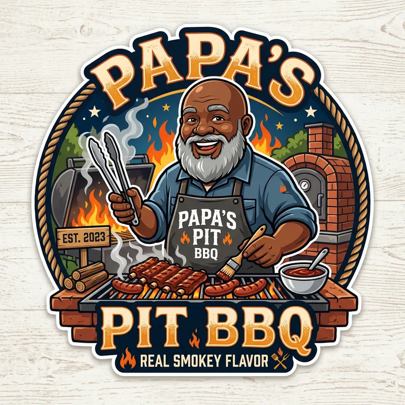 cartoon gray bearded bald blackman BBQ cook logo