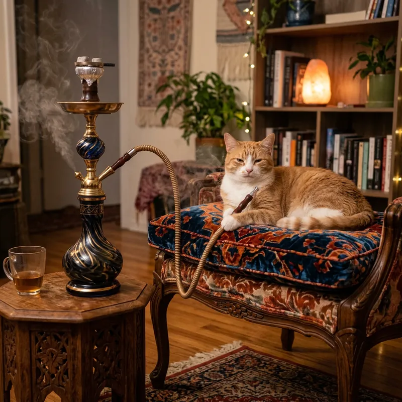 Cat Smoking a Hookah: Feline Relaxation