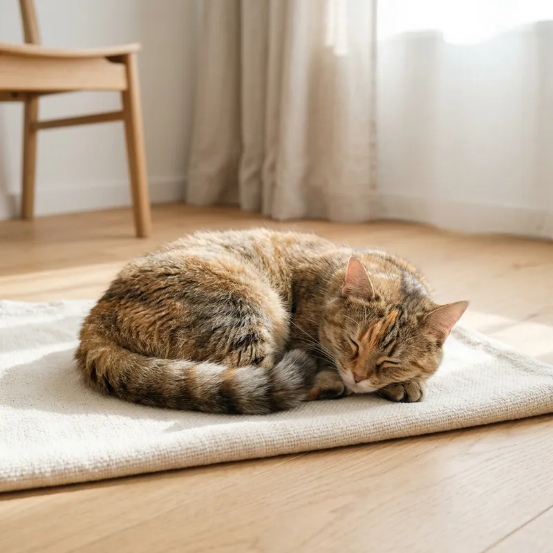 Tranquil Minimalist Cat Napping Scene