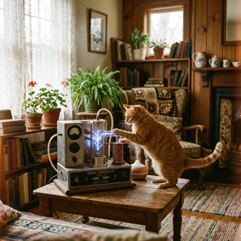 Cat Conducting Ozone Treatment in Nostalgic Room