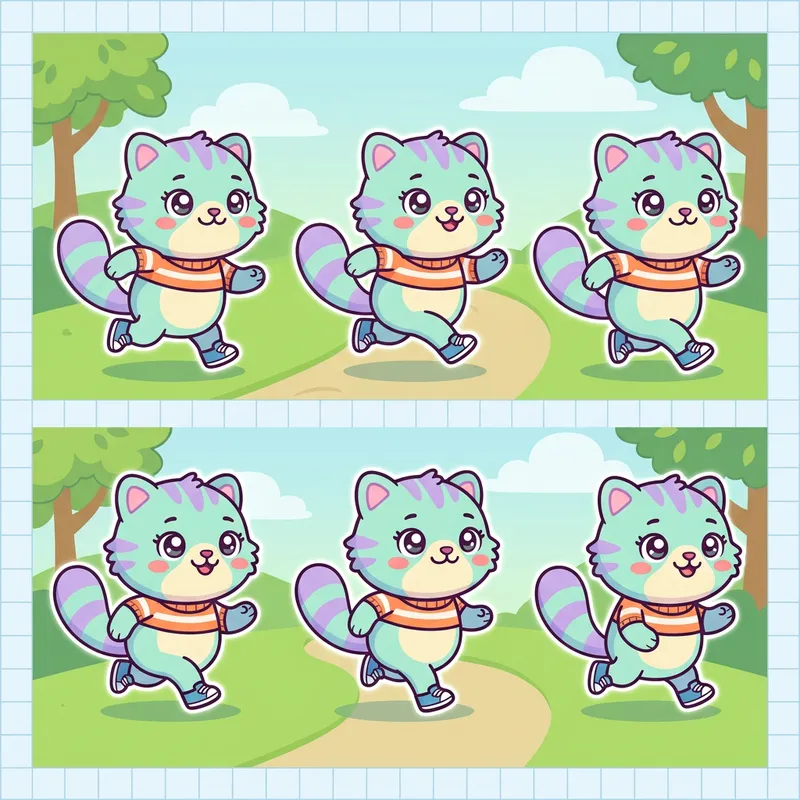 Character for a 2D game, inspired by Pet Society, cute and colorful design, running to the right animation, cartoon-style, friendly and playful