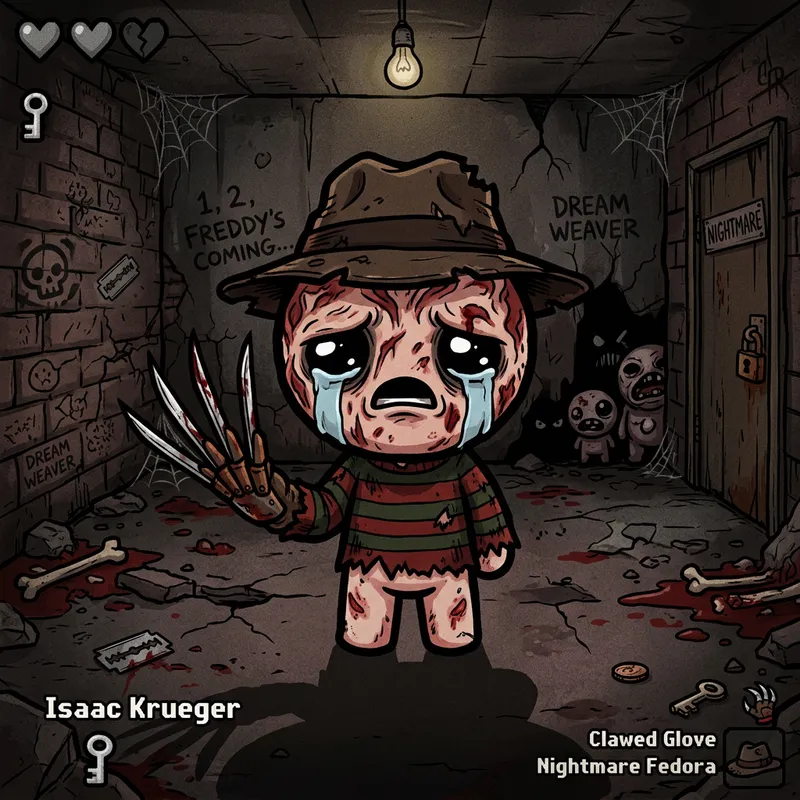 characters inspired by the style of The Binding of Isaac look like freddy krueger.