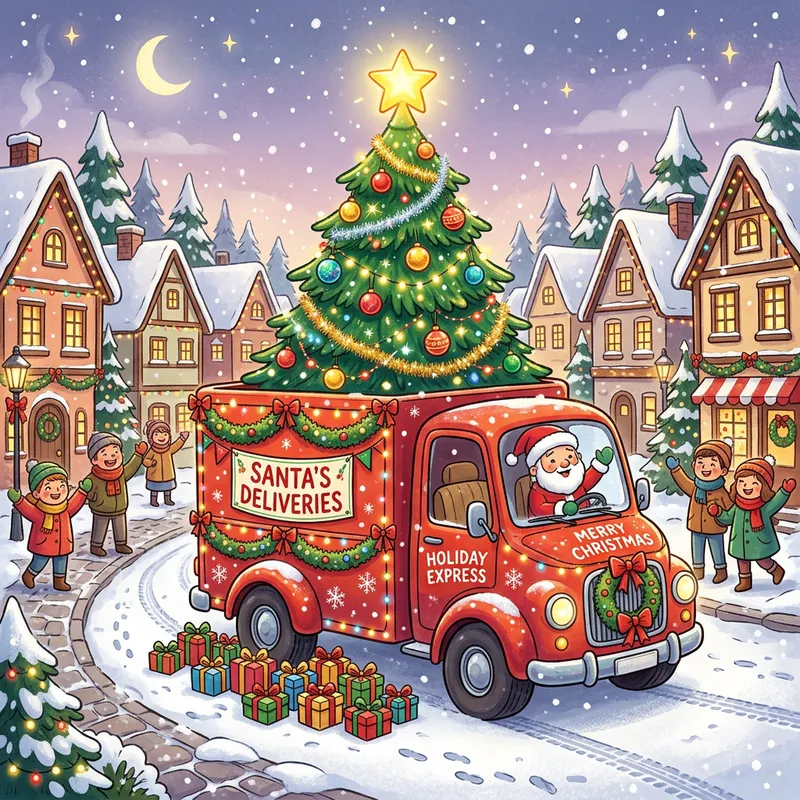 Playful Christmas Truck and Lush Green Tree