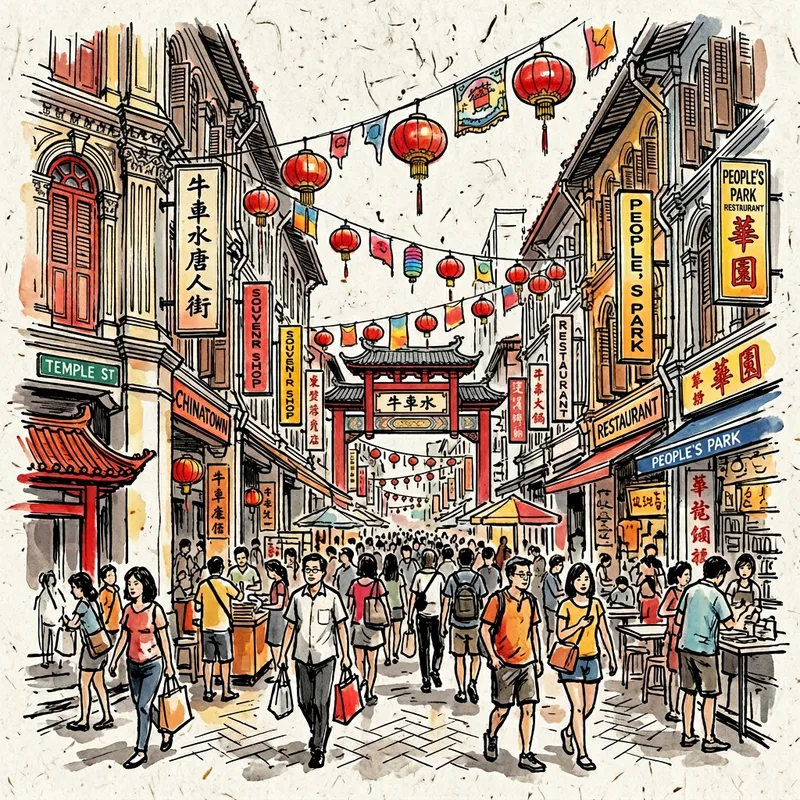 Ink-Wash Inspired Sketch of Chinatown, Singapore