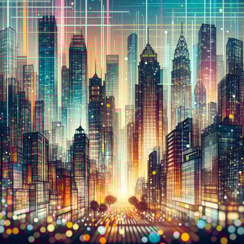 City Skyline Watercolor Painting with Investment Trends