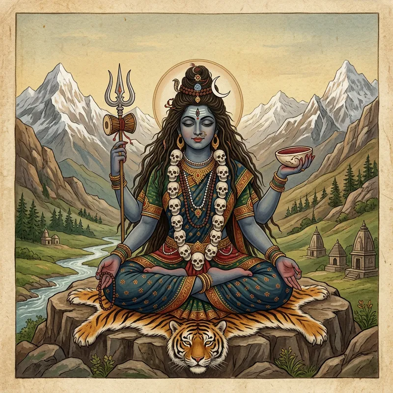 Classical Indian Deity Meditation in Himalayan Landscape
