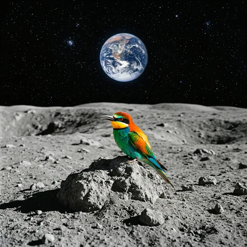 Colorful Bird on Lunar Landscape