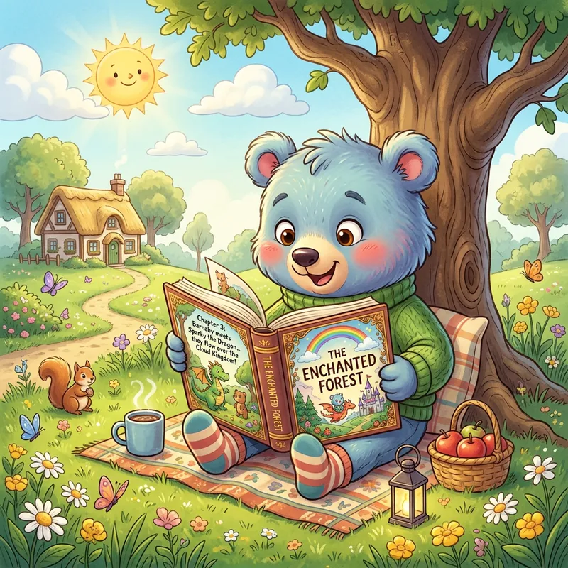 Charming Cartoon Scene of a Colorful Character Reading Storybook