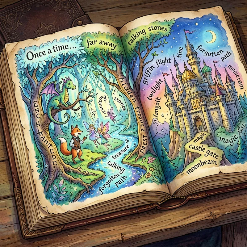 Colorful Enchanted Storybook with Jumbled-up Words