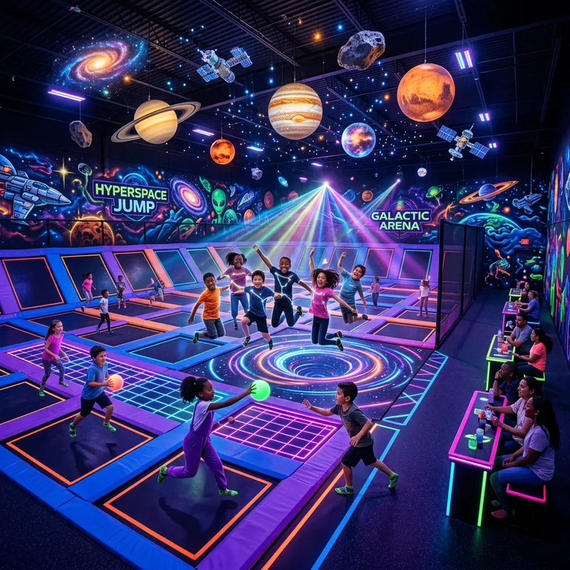Futuristic Indoor Trampoline Park with a Cosmic Twist