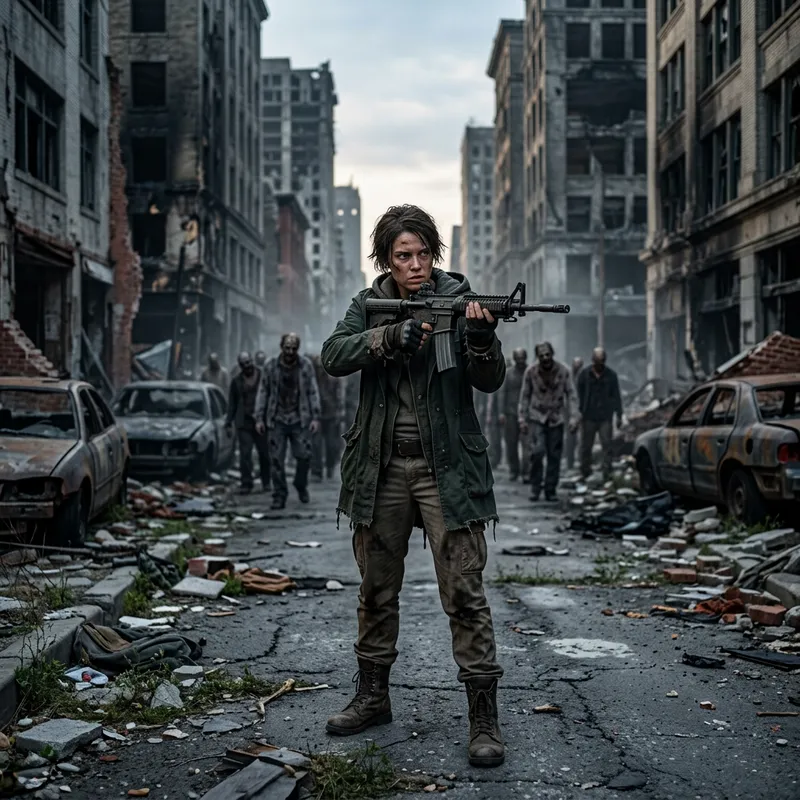 Courageous Female Survivor Battles Undead in Post-Apocalyptic Setting