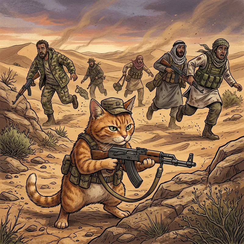 Courageous Tabby Cat Defends Desert Against Terrorists