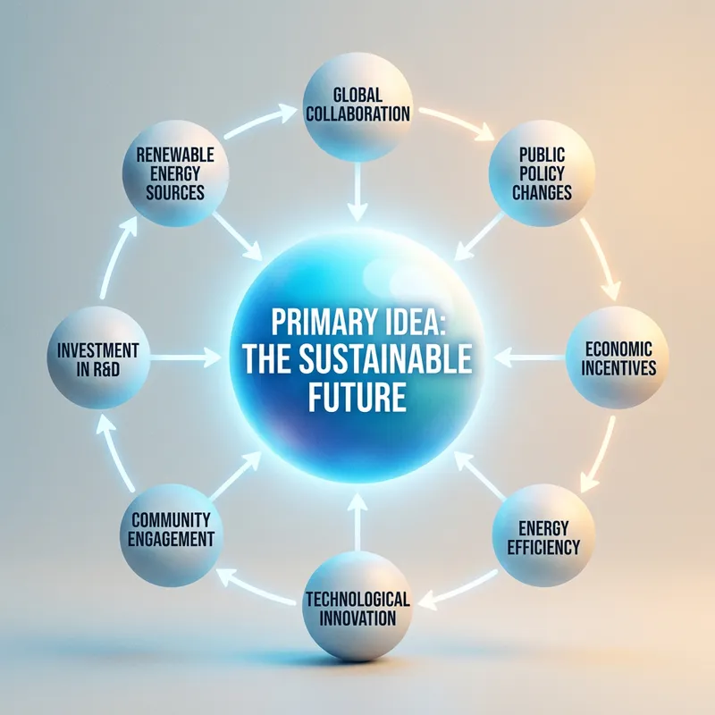 Create an image illustrating the concept of the primary idea in the center surrounded by secondary ideas as smaller bubbles or circles around it, denoting their supporting role to the main idea. The primary idea can be represented by a large, glowing sphere, and smaller spheres can symbolize the secondary ideas. Also, draw an arrow or a line connecting each secondary idea to the main one, symbolizing the relationship and flow of thoughts. The background can be a soft gradient to not distract from the concept.