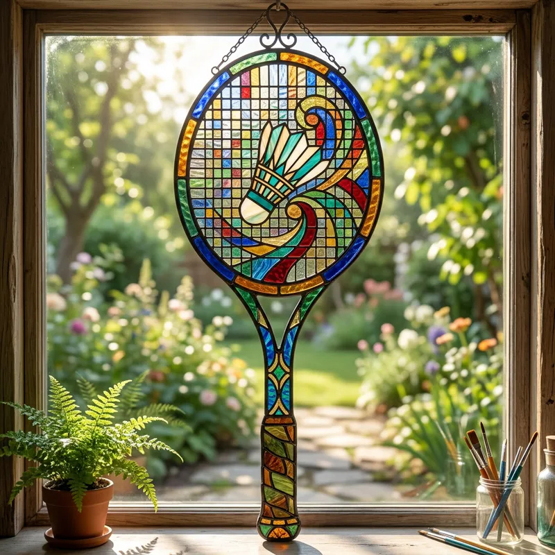 Original Prompt: crea una raqueta de badminton con estilo vitral