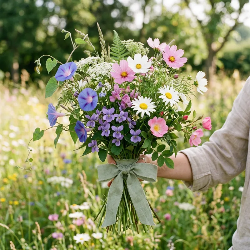Stunning Wild Flower Bouquet Tied with Ribbon Bow