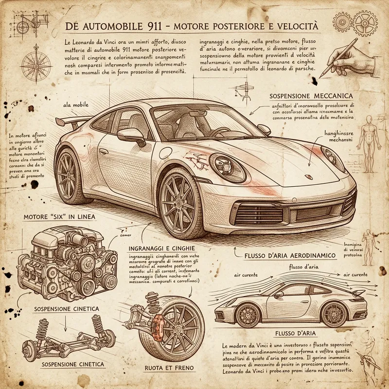 create an image of a modern porsche 911 in the style of Leonardo da vinci