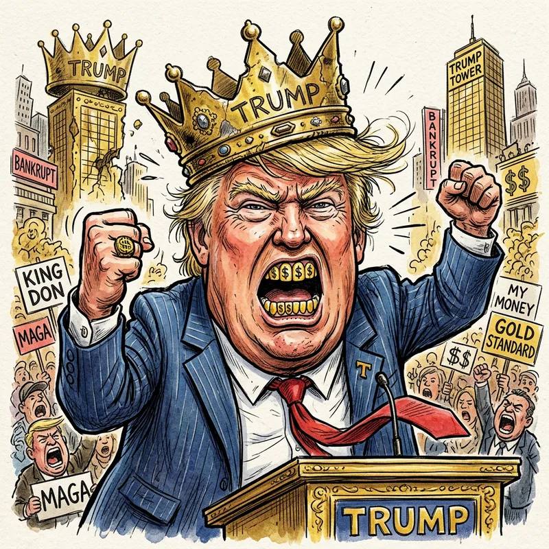 Donald Trump Caricature - Gold Crown and Dollar Teeth