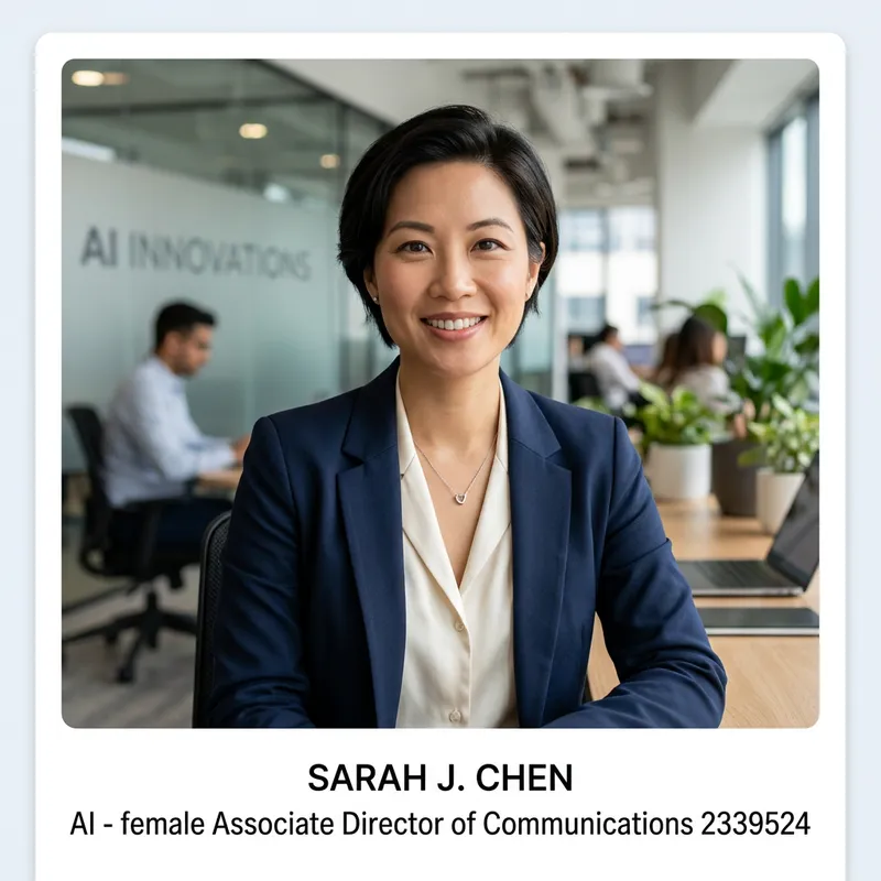 create a resume profile picture of an AI - female Associate Director of Communications