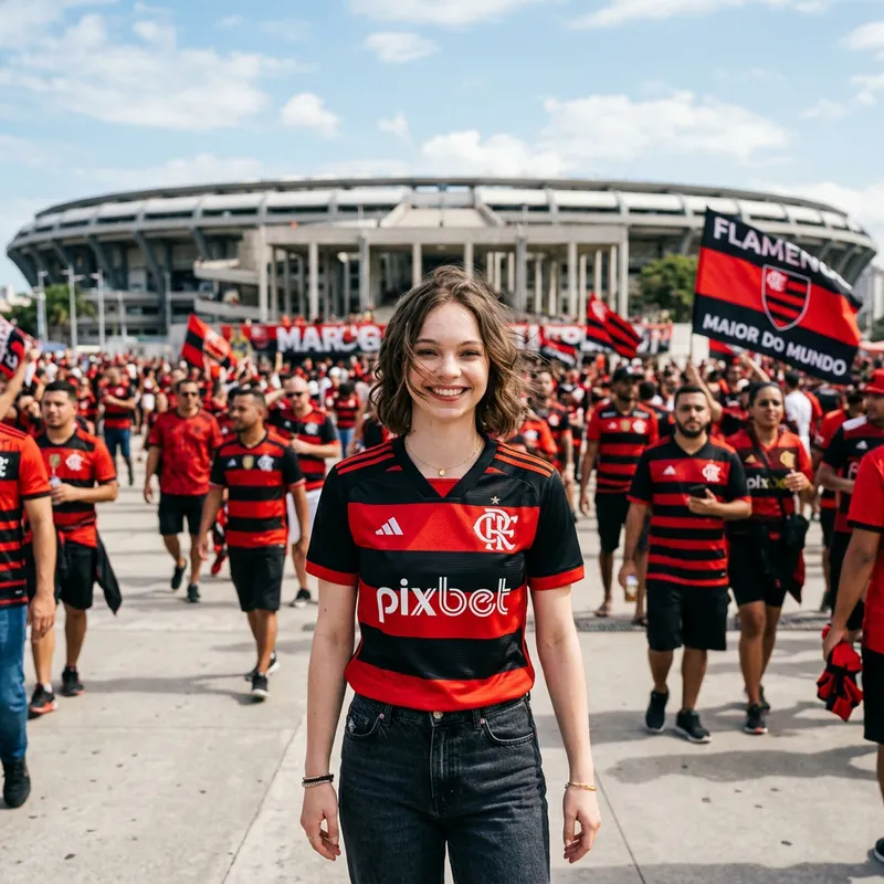 Original Prompt: crie uma imagem da Emma Myers com a camisa do flamengo
