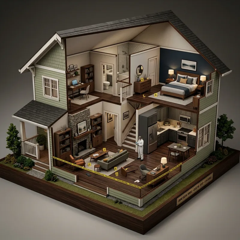 Detailed Two-Story Crime Scene Model Layout