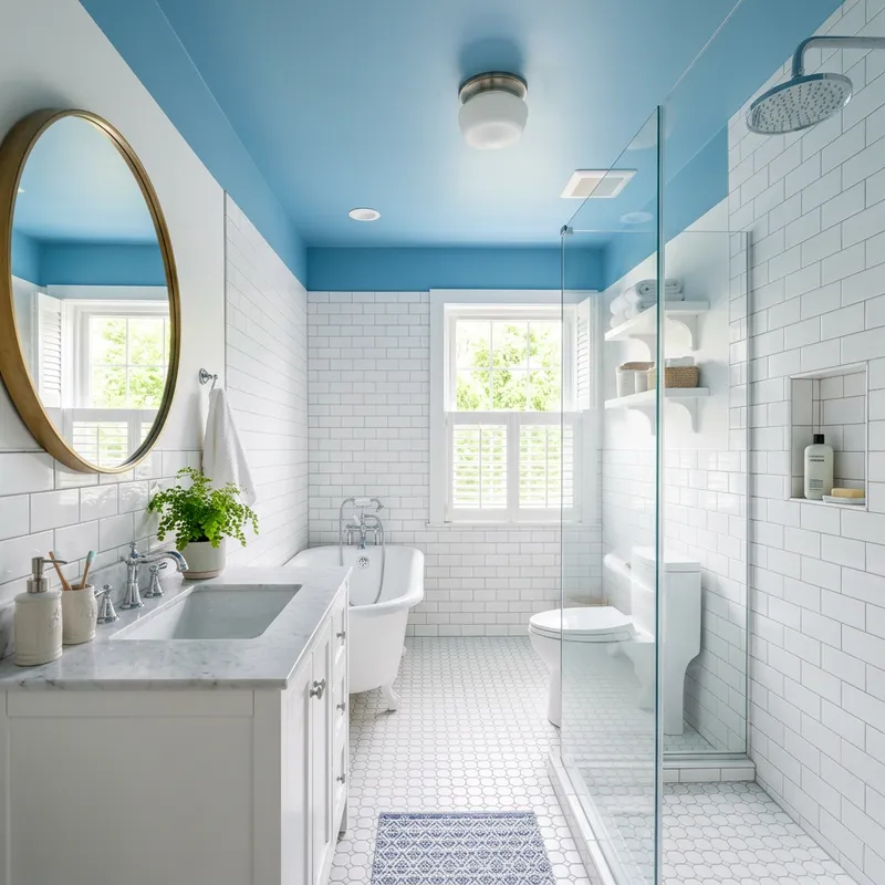 Elegant Bathroom Design with White and Blue Colors