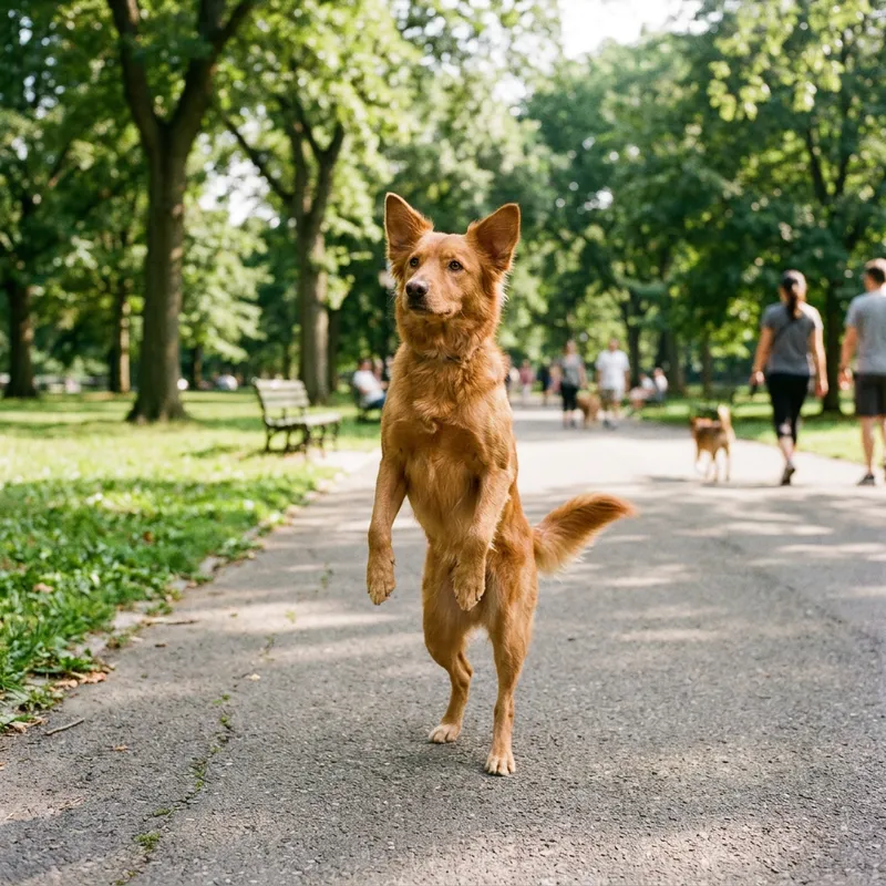 Curious Canine Walking Upright