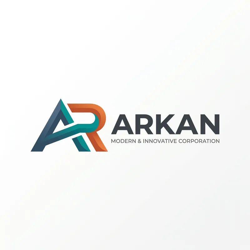 Please create a uniquely designed logo for a fictional business named 'ARkan'. The logo should represent a modern and innovative corporation. Please use clean lines and bold fonts, incorporating the letter 'AR' in a creative and striking way. The color scheme should consist of a combination of vibrant and earthy tones that creatively use contrast to evoke a sense of innovation and reliability.