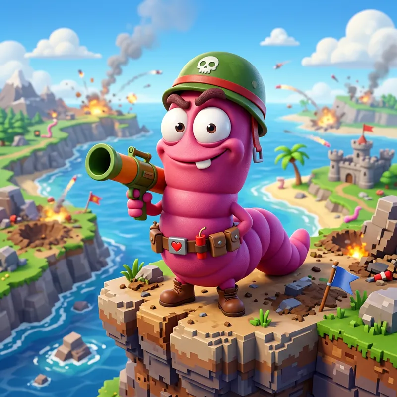 cute and funnu cartoon worm, worm color, like in game Worms Armagedon, 3D