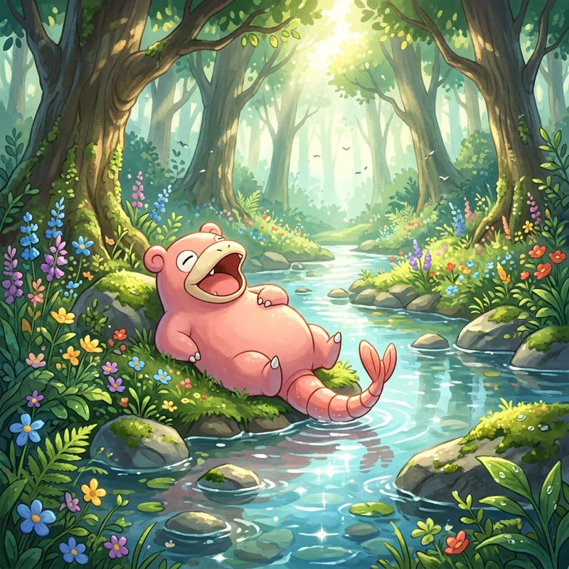 Adorable Pokemon Slowpoke Photos in a Tranquil Forest