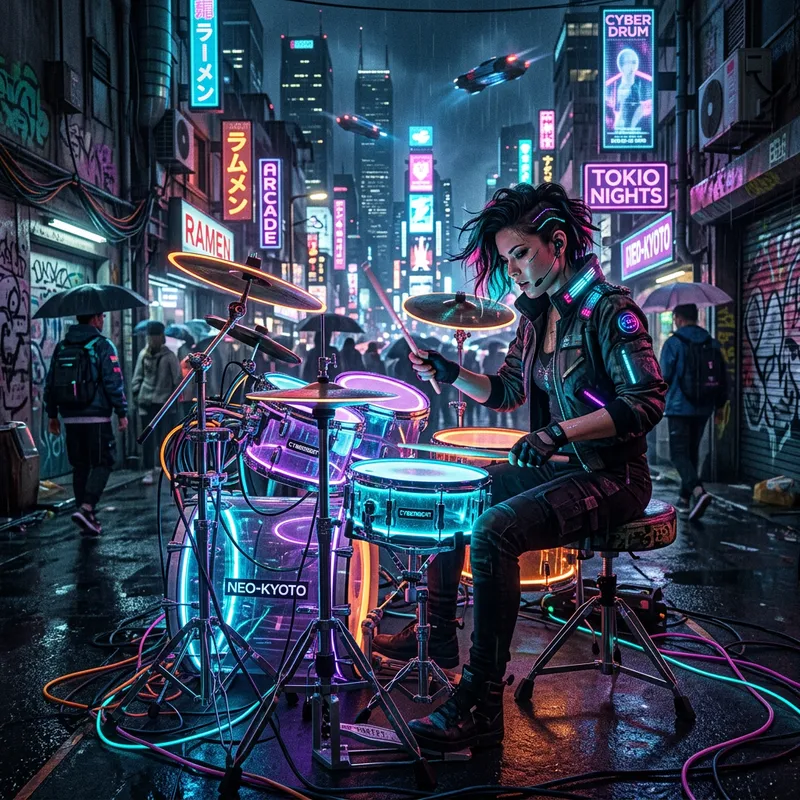 Cyberpunk Style Drum Image for a Futuristic Experience