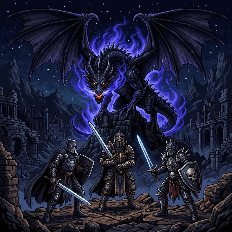 Epic Pixel Art Battle: Knights vs Ancient Black Dragon