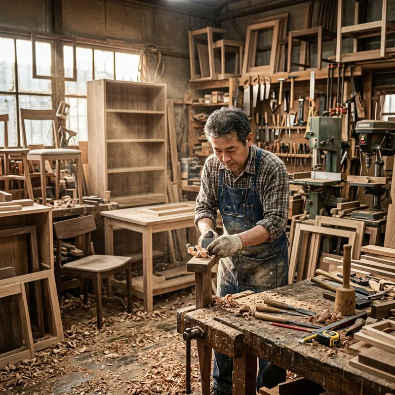 Skilled Carpenter Crafting Wood Furniture