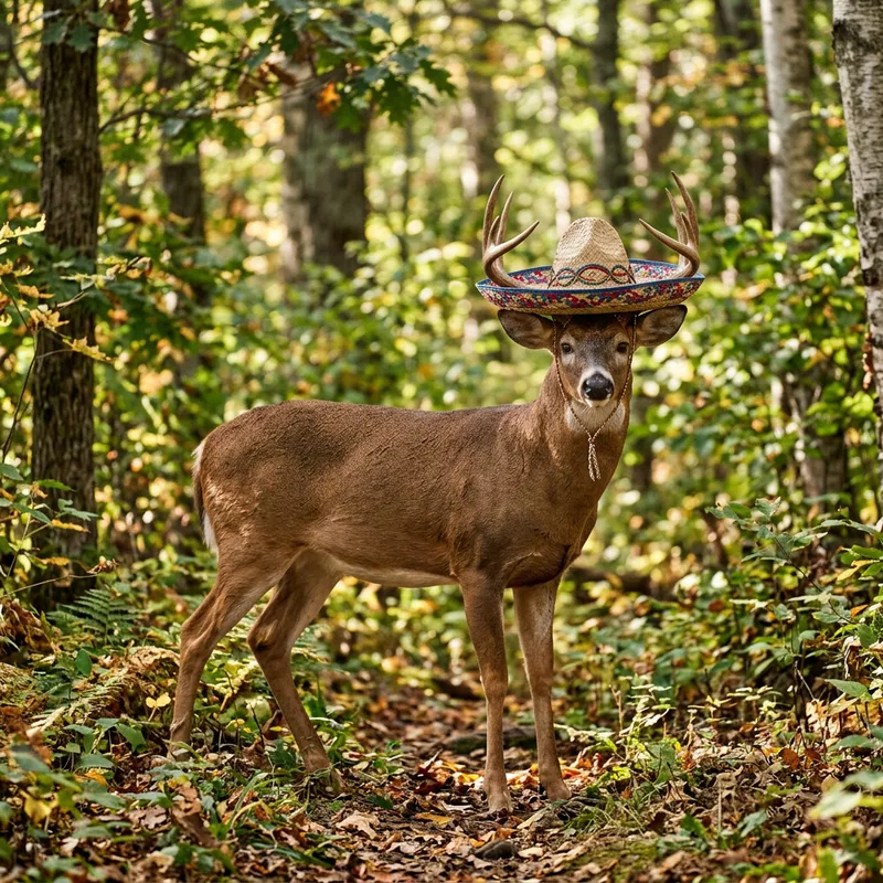Deer with Sombrero Hat - Realistic Wildlife Imagery