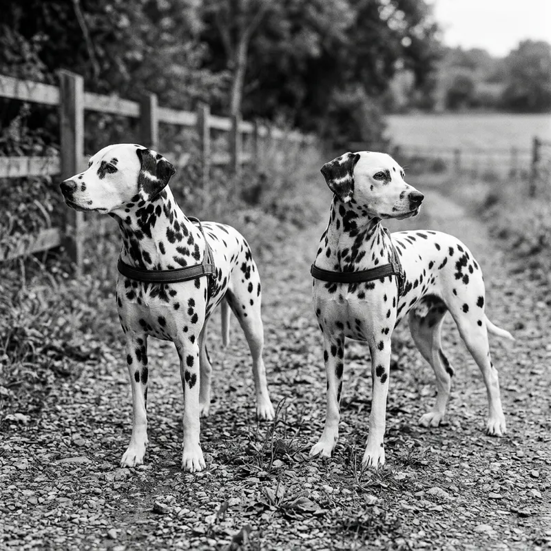 Detailed Black and White Photo of Two Dalmatians